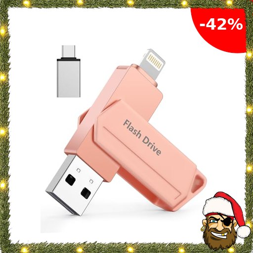 USB Stick für iPhone 256GB MFi Zertifiziert 3 in 1 USB 3.0 Lightning External Memory Type C Photostick Speicherstick für iPhone/iPad/iOS/Android/Mac/PC – Externe Speicher Pirat$e-Deals (Rosa)