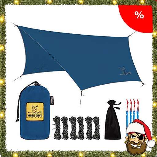 Wise Owl Outfitters Tarp Sonnensegel wasserdicht – Zeltplane als Regen- u. UV-Schutz Pir~ate-Deals für Hängematte, Feldbett, Strand – Camping Zubehör – Notfallzelt – Ultraleicht 735g – Outdoor Ausrüstung (Blau)