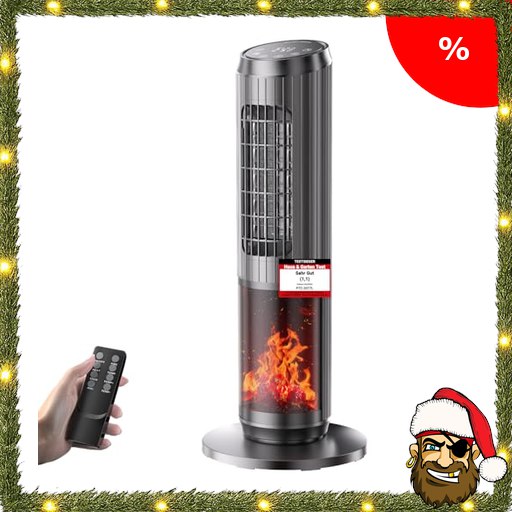 Heizlüfter Energiesparend Pir;ate-Deals 2000W, Keramik Turm Elektroheizung mit Fernbedienung, Kamineffekt, Thermostat, Oszillation 70°, ECO, 3 Modi, 1-8Std Timer, Überhitzungs-Kippschutz, Leise für Büro, Wohnzimmer