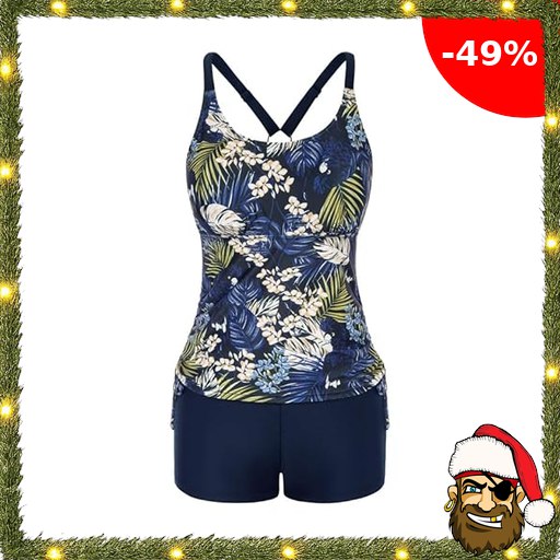 Pirate#-Deals JASAMBAC Tankinis für Damen Zweiteiliger Badeanzug Bauchweg Tankini Oberteil Und High Waist Badeshorts Komfortabel Bademode Mit Verstellbare Schultergurte Sportlich Strandmode