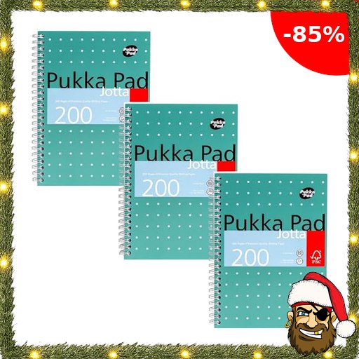 Pukka Pad, A5 Metallic Jotta notizbuch 3er-Pack für Zuhause, Schule und Büro – 15 x 21 cm – spiralbindung Notizbuch mit 8 mm Liniert und 80 g/m² Papier ~Pirate-Deals – mit perforierten Kanten – 200 Seiten, grün