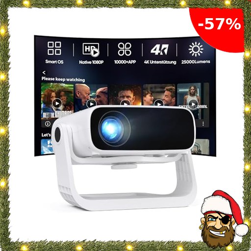 2025 Neuer Upgraded Smart Beamer Full HD 1080P, 25000 :Pirate-Deals Lumens, Android 11,Integrierte Apps, 4D Trapezkorrektur,WiFi 6 & BT 5.2, Heimkino 4K Beamer mit 120° drehbarem Ständer für iOS/Android/Laptops