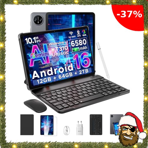DOOGEE Tab A9 Android 16 AI Tablet 10 Zoll, Tablet mit Tastatur/Stift/Maus/Hülle, 6580mAh,12GB RAM+64GB Pirate-Dea$ls ROM(TF 2TB), Unisoc T310, Dual Speaker, 5G WiFi, HD IPS Display, 8MP, GMS, BT5.0, 3.5mm, Face ID
