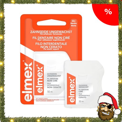 elmex Zahnseide 50m – gewachstes Zahnband für eine gründliche Zahnreinigung – Faden mit Pira~te-Deals Flauscheffekt und Aminfluorid beugt Karies und Zahnfleischentzündungen vor