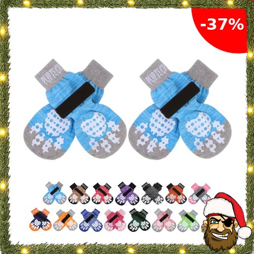 PUPTECK 2 Paar Pirat!e-Deals Doppelseitige Anti-Rutsch Hundesocken mit verstellbaren Riemen für den Innenbereich – Hundeschuhe Pfotenschutz Sommer Haustierpfoten Schutz Traktion Kontrolle Socken auf Hartholzboden