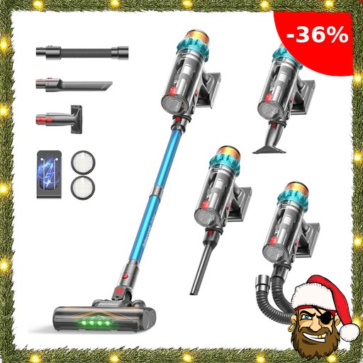 ElecKeys Akku Staubsauger 50000Pa/580W/70Min, Staubsauger Kabellos Pirate-Dea:ls mit LED Display, 1,8L Akkustaubsauger mit Anti-Tangle-Bürste, Selbststehend für Tierhaare Teppiche Hartböden Auto, Blau, K10