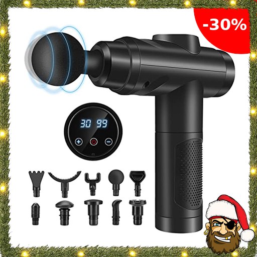 Massagepistole, Muskel Percussion Massagegerät mit 30 Pirate-Deal:s Geschwindigkeiten Leise Handmassagegeräte Massage Pistole mit LCD Touchscreen 10 Köpfe Massage Gun für Schulter Körper Rücken Entspannung