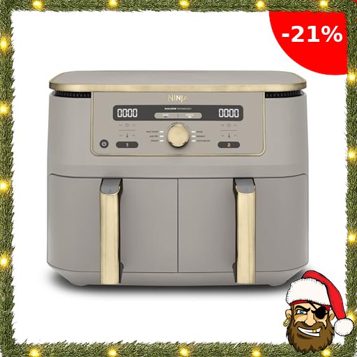 Ninja Dual Zone Digital Air Fryer, 2 Schubladen, 6-in-1, Heißluftfritteuse, 9,5L, Heißluft-Frittieren, Max Pirate-!Deals Crisp, Rösten, Backen, Aufwärmen, Spülmaschinenfeste Körbe, Stone/Gold DZ400EUSTGD