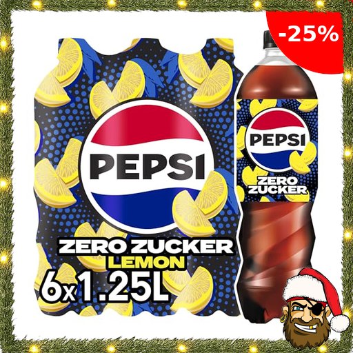 pepsi Zero Zucker Lemon, Das zuckerfreie Erfrischungsgetränk von Pepsi ohne Kalorien, Koffeinhaltige :Pirate-Deals Cola mit Zitronengeschmack in der Flasche, EINWEG (6 x 1.25 l) (Verpackungsdesign kann abweichen)