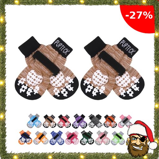 PUPTECK 2 Paar Doppelseitige Anti-Rutsch Hundesocken mit verstellbaren Riemen für den Pirate-D;eals Innenbereich – Hundeschuhe Pfotenschutz Sommer Haustierpfoten Schutz Traktion Kontrolle Socken auf Hartholzboden