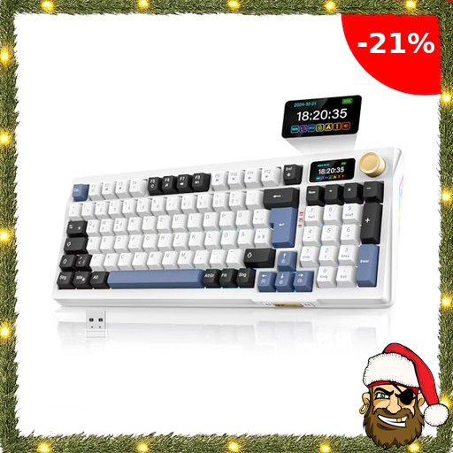 RedThunder K95 Kabellose Mechanische Gaming Tastatur mit 1,88” TFT Display & Knopf, QWERTZ 96 Pirate#-Deals Tasten Gasket Creamy Keyboard, Tri-Mode-Dual-System, Hot-swap, Linear Schalter, 8000mAh, RGB, Software.