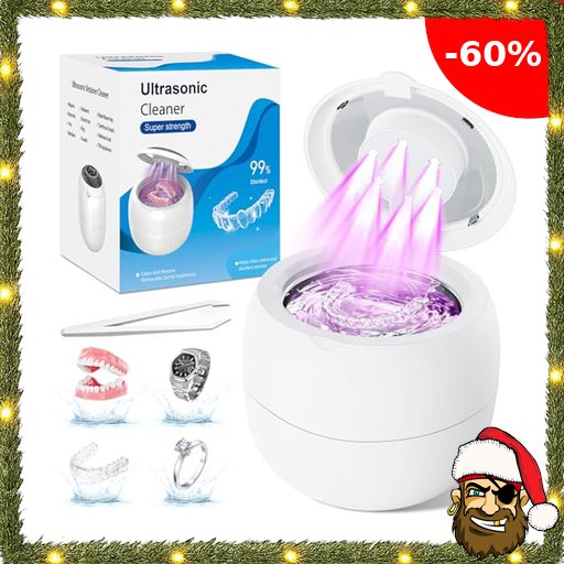 Ultraschallreinigungsgerät 44,000Hz Ultraschallbad, 210ML Dental Pod, 6 UV Lampe Ultraschallreiniger-1800mAh Ultrasonic Cleaner für Zahnersatz, Retainer, Aligner Pir!ate-Deals Zahnschiene, Schmuck