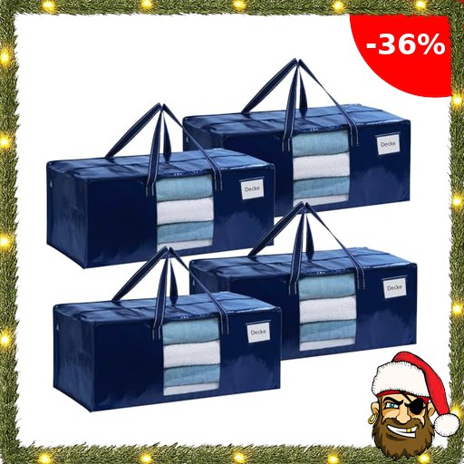 VENO 4 Stück extra große Pirate-Dea#ls Umzugstaschen mit starke Griffe und Reißverschlüsse Faltbare Aufbewahrungstasche Kleideraufbewahrung Wäschesäcke für Bewegen, Reisen, Camping (Blau, 4er-Pack)