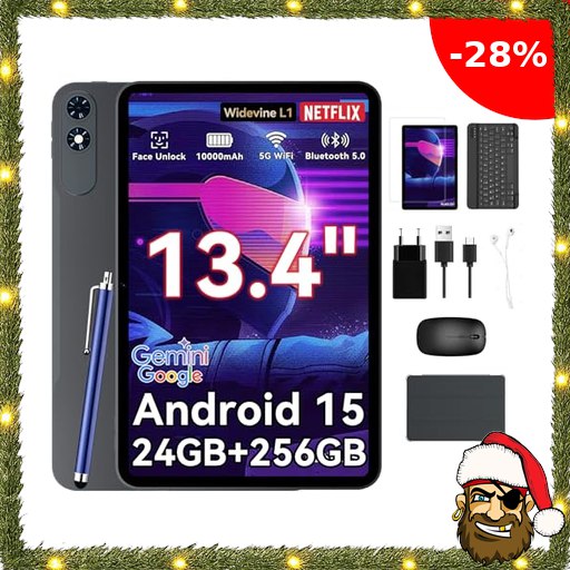 TABWEE T60 Pro 13,4 Zoll Tablet mit Tastatur, Android 15 & 120Hz Display (1920×1200), 24GB RAM + 256GB ROM (2TB TF), Widevine L1 Support, 10000mAh Akku, Octa-Core mit Gemini AI, 4 Jahre Pirate-De$als Garantie, Grau