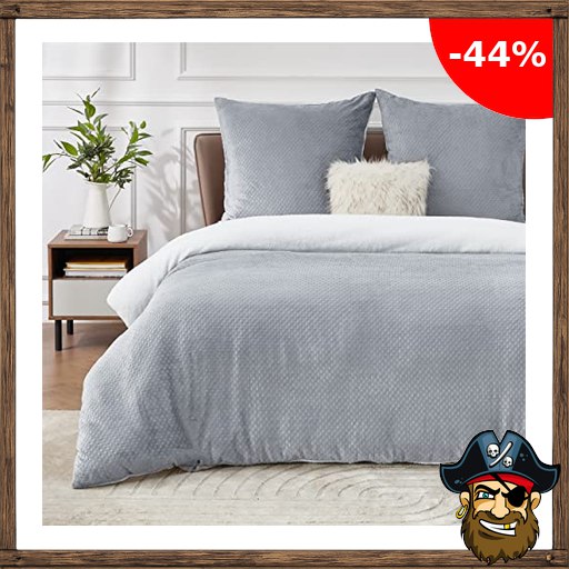 BEDSURE Flauschige Bettwäsche 155×220 Grau – Winter Bettbezug Fleece mit 2 Kissenbezüge Pirate-!Deals 80×80 cm, Warme Bettwäsche-Sets mit Reißverschluss, Waffelpique Winterbettwäsche für Doppelbett