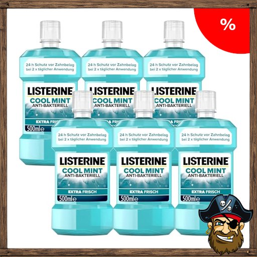 LISTERINE Cool Mint 6 x 500 ml, Pirate!-Deals antibakterielle Mundspülung mit ät…