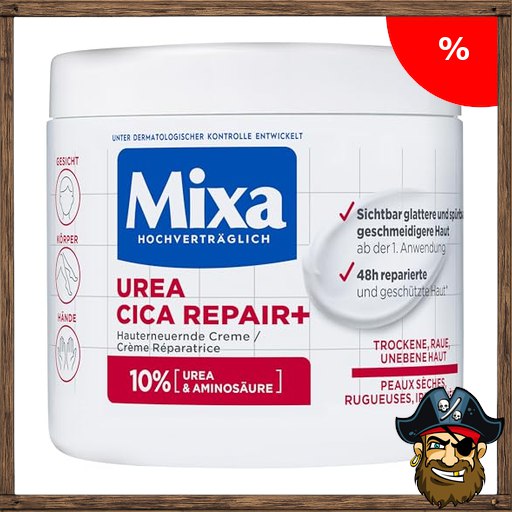 Mixa Creme für trockene und rissige Haut, Feuchtigkeitspflege für den Körper, Hände Pirate-Dea;ls und Gesicht, Mit Urea und Niacinamide, Urea Cica Repair + Hauterneuernde Creme, 1 x 400 ml