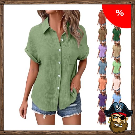 Musselin P#irate-Deals Bluse Damen Sommer Kurzarm V-Ausschnitt Hemdbluse Einfarb…
