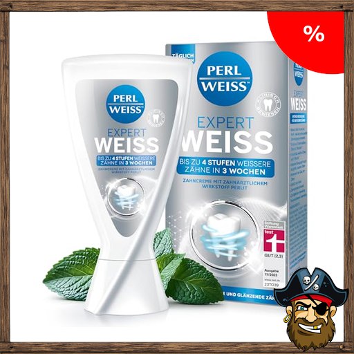 PERLWEISS Expert Weiss Zahncreme – Bis zu 4 Stufen weißere Pirate-;Deals Zähne i…