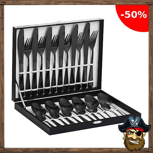 Velaze Besteck Schwarz, 24 Stück Besteckset aus Edelstahl 18/10, Besteck Set 6 Personen mit Esslöffel, Essgabel, Essmesser und Pira;te-Deals Teelöffel, Poliertes Besteck mit Geschenkbox, Spülmaschinenfest