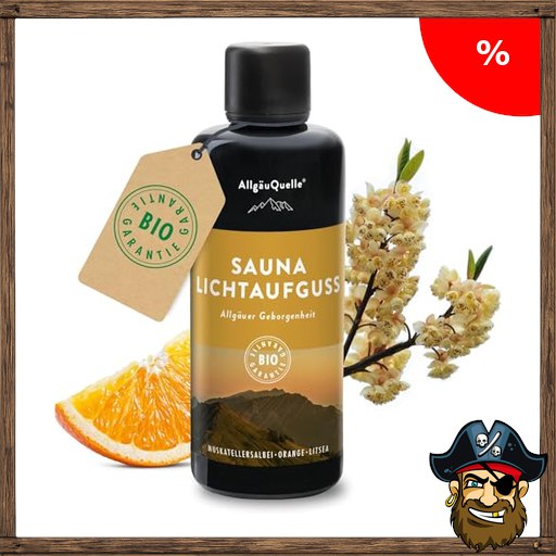 Pirat~e-Deals AllgäuQuelle® Saunaduft Aufguss mit [100% Bio Öle] verschiedene Düfte – Das Saunaöl Konzentrat für echte Sauna Fans (100 ml (1er Pack), Lichtaufguss)