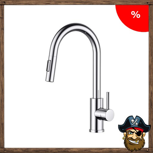 FORIOUS Wasserhahn Küche, Hoher Bogen Küchenarmatur mit Herausziehbarer Brause Pi~rate-Deals Ausziehbar Armatur, Mischbatterie Spültischarmatur Küche Küchenarmaturen, 360° Schwenkbar, Polierter Chrom