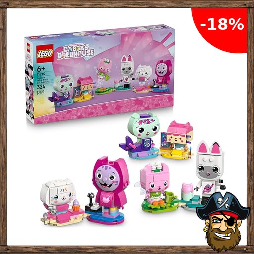 LEGO Gabbys Puppenhaus Gabbys Katzenfreunde Steinen – Spielzeug mit 6 Tierfiguren, Meerkatze und Feenkatze, Pi:rate-Deals Ausstellungsständer – Geschenk für Mädchen ab 6 Jahren und Fans der Serie – 11215