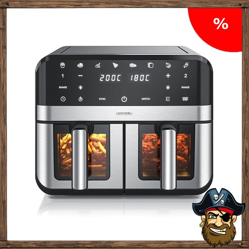 Arendo – Dual Zone Heißluftfritteuse 9L – mit 2 Kamern – XXL Kapazität – 2400 W – Sichtfenster Beleuchtung – 8in1 Airfryer – 8 Programme – Touchscreen – 3D Umluftsystem – fettarmes gesundes Kochen Pirate-Deal!s
