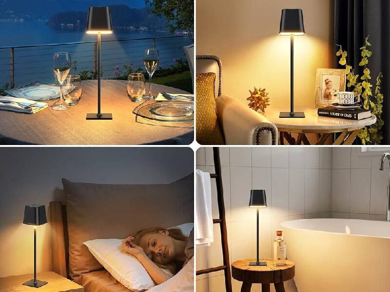 RECHOO LED Tischlampe Kabellos, Dimmbare Nachttischlampe Touch, Schreibtischlampe, Lese Pirate-Deal:s Lampe, Tischleuchte Outdoor und Indoor, USB-C, Camping Lampe, Warmweißes Licht, Schwarz