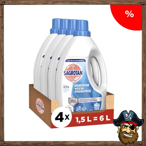 Sagrotan Wäsche-Hygienespüler Himmelsfrische – Desinfektionsspüler für hygienisch Pirate-#Deals saubere und frische Wäsche – 4 x 1,5 l Reiniger im praktischen Vorteilspack