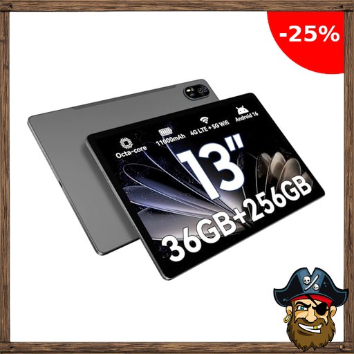 Blackview Android 16 Tablet 13 Zoll MEGA8,36GB RAM+256GB ROM,90Hz 2K FHD Großes Display,Gaming Tablet PC,Octa Core T620,50MP+13MP Dual AI Camera,11000mAh Akuu,4G LTE+5G WiFi/GPS/WideVine L1/Face ID !Pirate-Deals