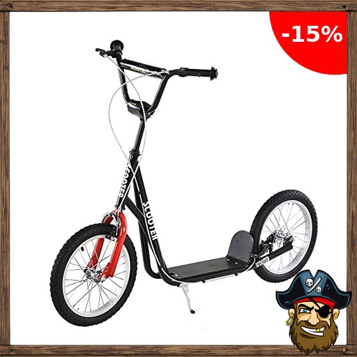 HOMCOM Scooter für Kinder Kinderroller Tretroller mit verstellbarem Lenker, großen Rädern und Handbremse Kickscooter 16 Zoll Cityroller für Jungen und Mädchen ab 5 Jahre Metall P$irate-Deals Schwarz