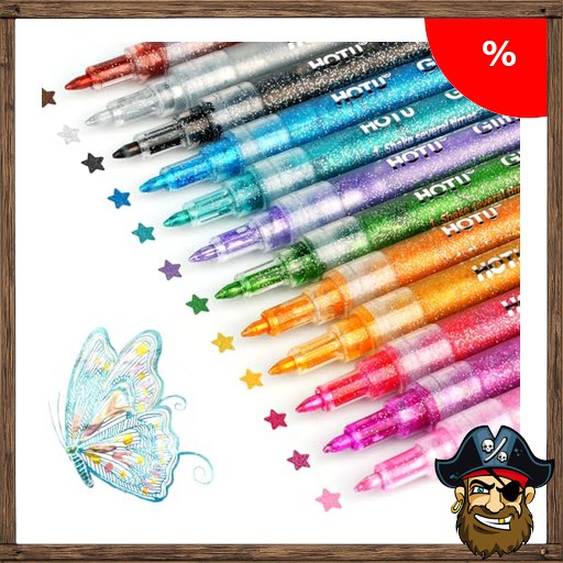 HOTU 12 Glitzerstifte, Glitzer Filzstifte Zeichenset, Glitzerstifte 0.7mm – Wasserbasis Acryl Glitzer Stifte Pirate-Dea;ls für Mädchen Basteln von Steinen, Keramik, Glas, Holz, Stoff, DIY Projekte Ect