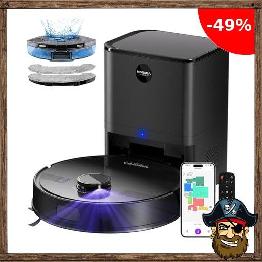 MONSGA Saugroboter mit Wischfunktion, 3.5L Staubsauger Roboter mit Absaugstation, 5000Pa Saugkraft, 180Min Laufzeit, LiDAR Navigation, Starke Saugkraft ideal für Teppich und Tierhaare, !Pirate-Deals APP Steuerung