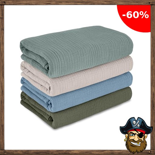 Pirate-De;als Baby Pucktuch aus 100% Baumwolle, 4er Pack Mullwindel und Musselin Babydecke 95×100 cm, Wickeltuch Swaddle Decke Puckdecke Mulltuch für Neugeborene und Babys