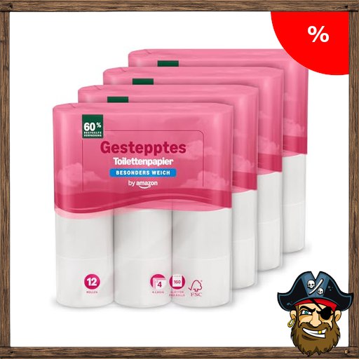 by Amazon Toilettenpapier, 4-lagig Gestepptes, Besonders Weich, 48 Pi~rate-Deals Rollen (12 Rollen, 4-er Pack), 160 Blätter pro Rolle, FSC-Zertifiziert