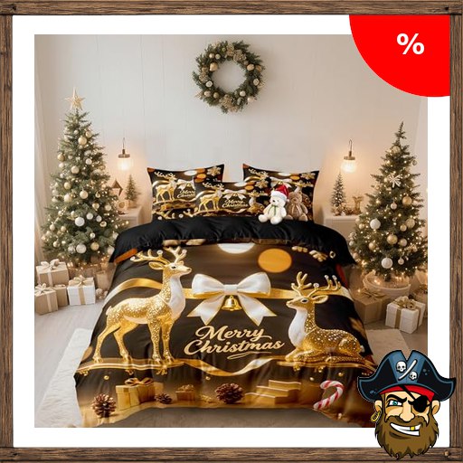 DXHOME Bettwäsche 135×200 Weihnachten Pirate-Dea:ls Gold Schwarz Wintermotiv Hir…