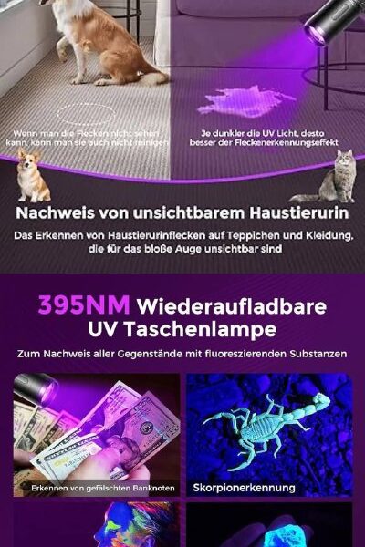 GEARLITE Wiederaufladbar LED UV Schwarzlicht Taschenlampe, Leicht Mini UV Lampe …
