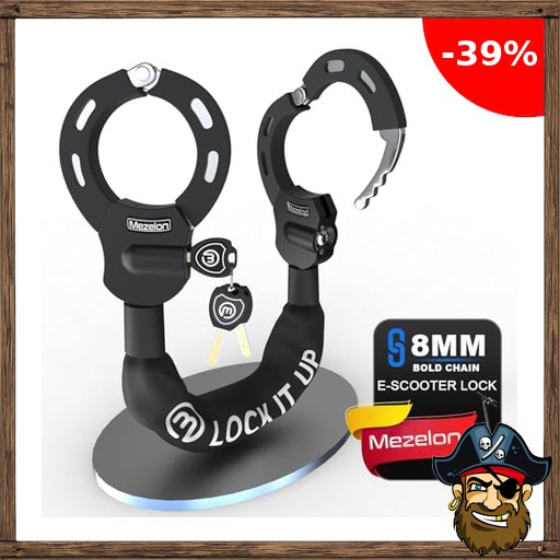 Mezelon E Scooter Schloss 8mm | Fahrradschloss | Hochsicherheits-Schlösser | Handschellenschloss | Hochbelastbare Pirate-D;eals Schlösser für E Scooter/Fahrräder/E-Bike/Motorrad