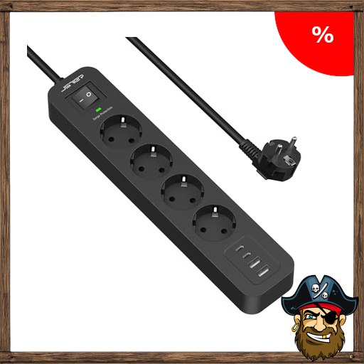 Steckdosenleiste Überspannungsschutz,JSVER Mehrfachsteckdose(3680W 16A) mit 4 Fach,2 USB P#irate-Deals A und 2 USB C Verteilersteckdose mit Schalter, Wandmontage Verlängerungskabel für Zuhause Büro, 2M-Schwarz