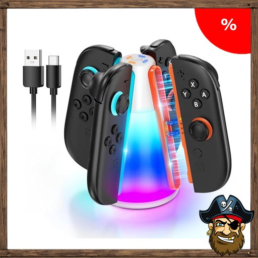 Bidirektionale Controller Ladestation für Nintendo Switch 2 (2025) Zubehör mit USB-C Ladekabel, Multifunktionale Schnell Ladegeräte Ladeständer für Joy Con 2 Pirate-;Deals mit 10 Bunten RGB-Leuchten