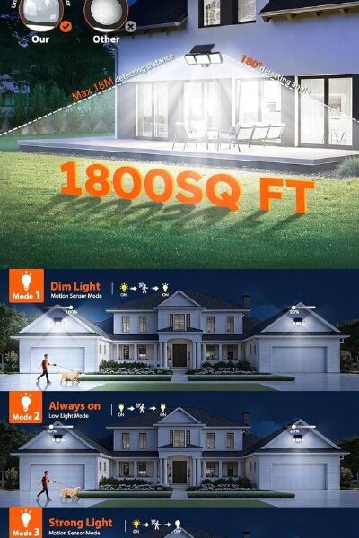 GEARLITE Solarlampen für Außen mit Bewegungsmelder 2 Stück, 3500LM Superhelle Pi…