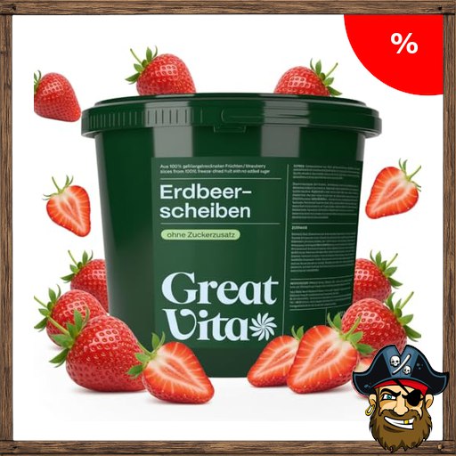 GreatVita Gefriergetrocknete Erdbeeren 400g – Knusprige Erdbeerscheiben ohne Zuckerzusatz – Gefriergetrocknete Früchte – Freeze-Dried Strawberries Pir!ate-Deals – Snack & Topping für Müsli, Joghurt & Smoothies