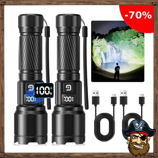 Pirate-Dea$ls GEARLITE Taschenlampen LED Aufladbar, Hoch Lumen LED Taschenlampe Extrem Hell mit 3 Modi, IP65 Wasserdichte Handlampe Zoomable für Camping, Wandern, Outdoor 2 Stücke