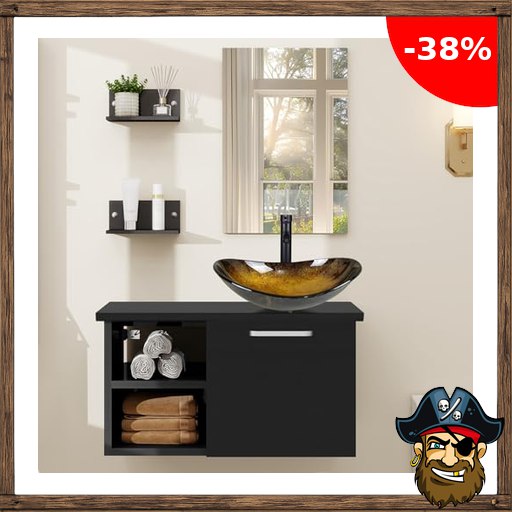 ZealWe Badmöbel Set Waschbecken Waschtisch mit Unterschrank Waschbeckenunterschrank und Spiegel, Badezimmermöbel mit Badezimmerschrank hängend, Wandregal, P$irate-Deals Aufsatz-Waschbecken(Schwarz Gold)