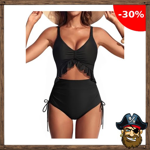 Hanna Nikole Pirate-Deal#s Damen Bauchweg Raffung Schwarz Badeanzug, V Ausschnit…