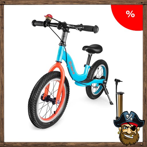 I BUY IT 14 Pir!ate-Deals Zoll Laufrad ab 3 4 5 6 Jahre Jungen Mädchen, Verstellbares Kinder Laufräder mit Bremse & Ständer, Kinderlaufrad ohne Pedale mit Luftreifen & Fußstütze (Blau & Orange, 14 Zoll)