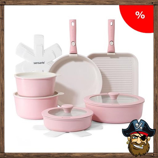 SENSARTE Keramik Topfsets Pfannenset 17 Teiliges, Antihaft Kochgeschirr mit Abnehmbarem Griff, Für alle Herdarten geeignet, Spülmaschinenfest, Ofenfest, $Pirate-Deals PFAS PTFE PFOA PFOS Frei (Rosa)