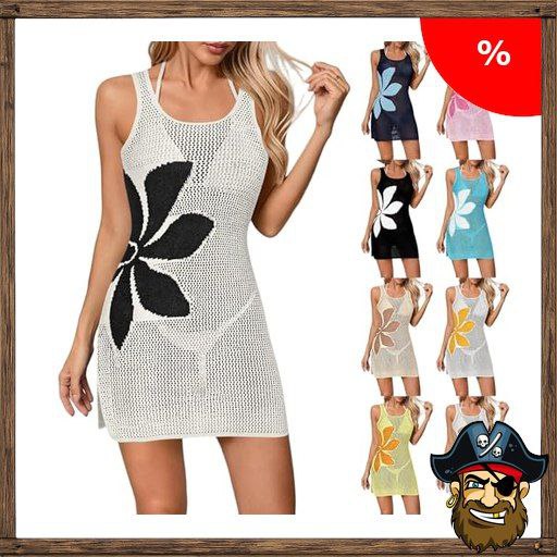 AACH 2026 Strandkleid Damen Bikini Cover Up Kleid Sexy Hohle Strandtunika Luftig Strand Sommerkleid Ärmelloses Urlaub Strandkleider Elegant Pirate-D$eals Transparentem Strandponcho Sonnenschutz Midikleid