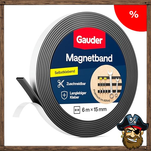 GAUDER Magnetband selbstklebend stark – Magnetstreifen selbstklebend stark – Magnetklebeband zuschneidbar mit optimaler Haftkraft – Pir~ate-Deals Klebemagnete mit hoher Magnetkraft – Magnet Klebeband (6 m x 15 mm)